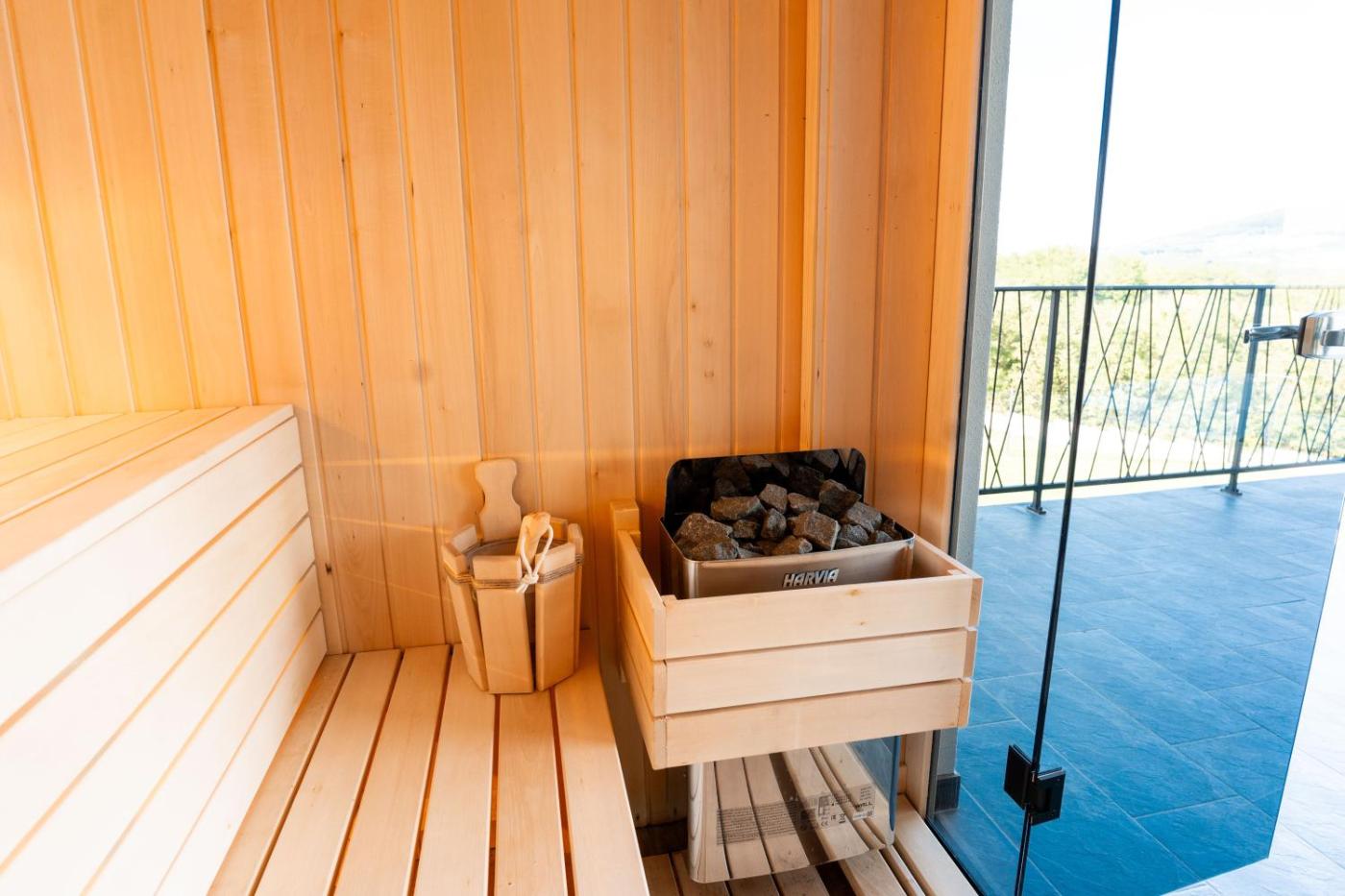 One-Bedroom Villa. This villa boasts a hot tub and a sauna. The villas kitchen is available for cooking and storing food. This villa is air-conditioned and features a washing machine, a minibar as well as a terrace with garden views. The unit offers 2 beds.