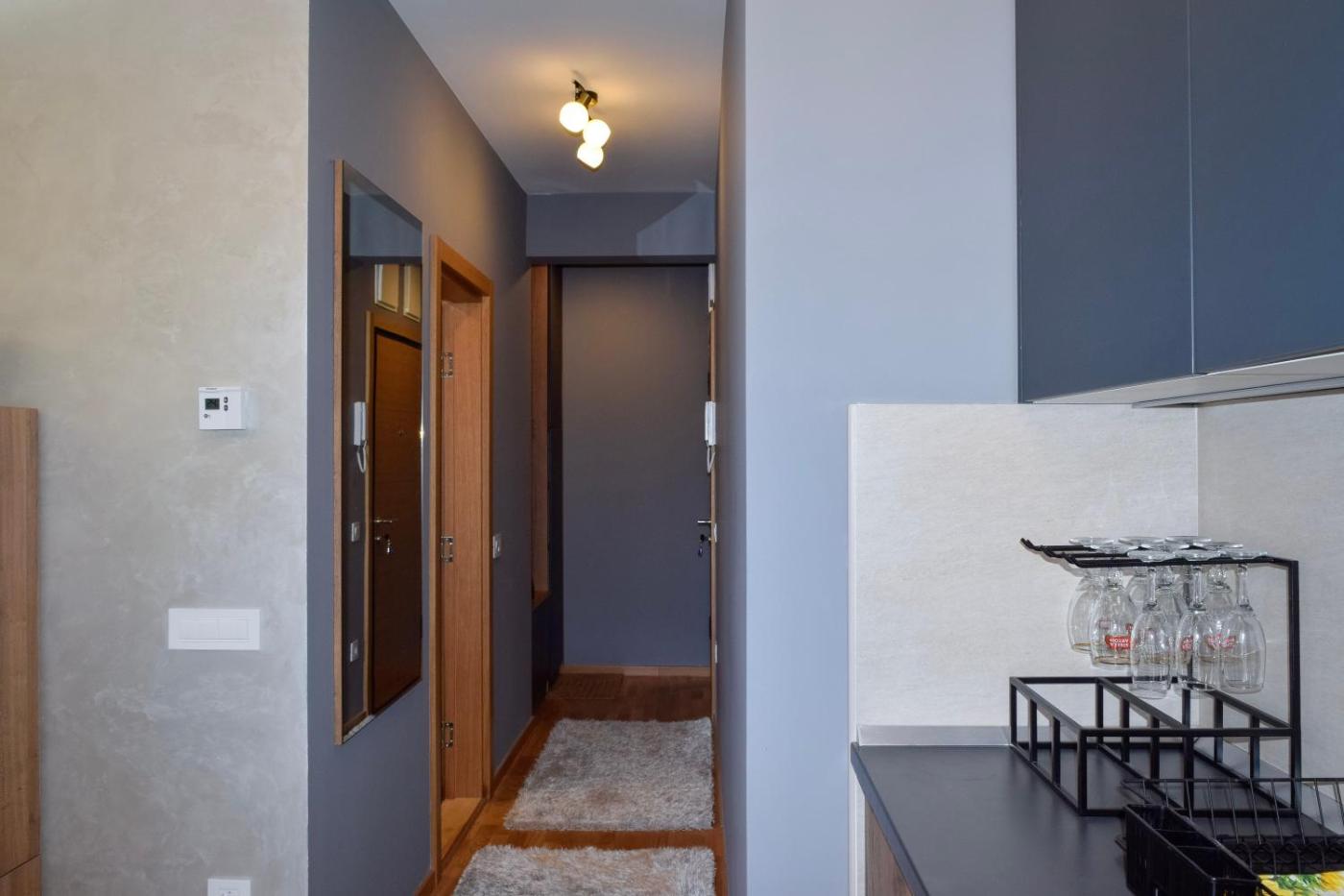 One-Bedroom Apartment. This apartment consists of 1 living room, 1 separate bedroom and 1 bathroom with a shower and a hairdryer. Guests can make meals in the kitchen that is equipped with a stovetop, a refrigerator, a dishwasher and an oven. Featuring a balcony with mountain views, this apartment also provides soundproof walls and a flat-screen TV. The unit offers 2 beds.